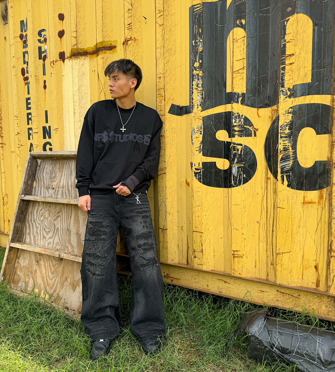 “NF$$TUDIOS” DISTRESSED CREWNECK