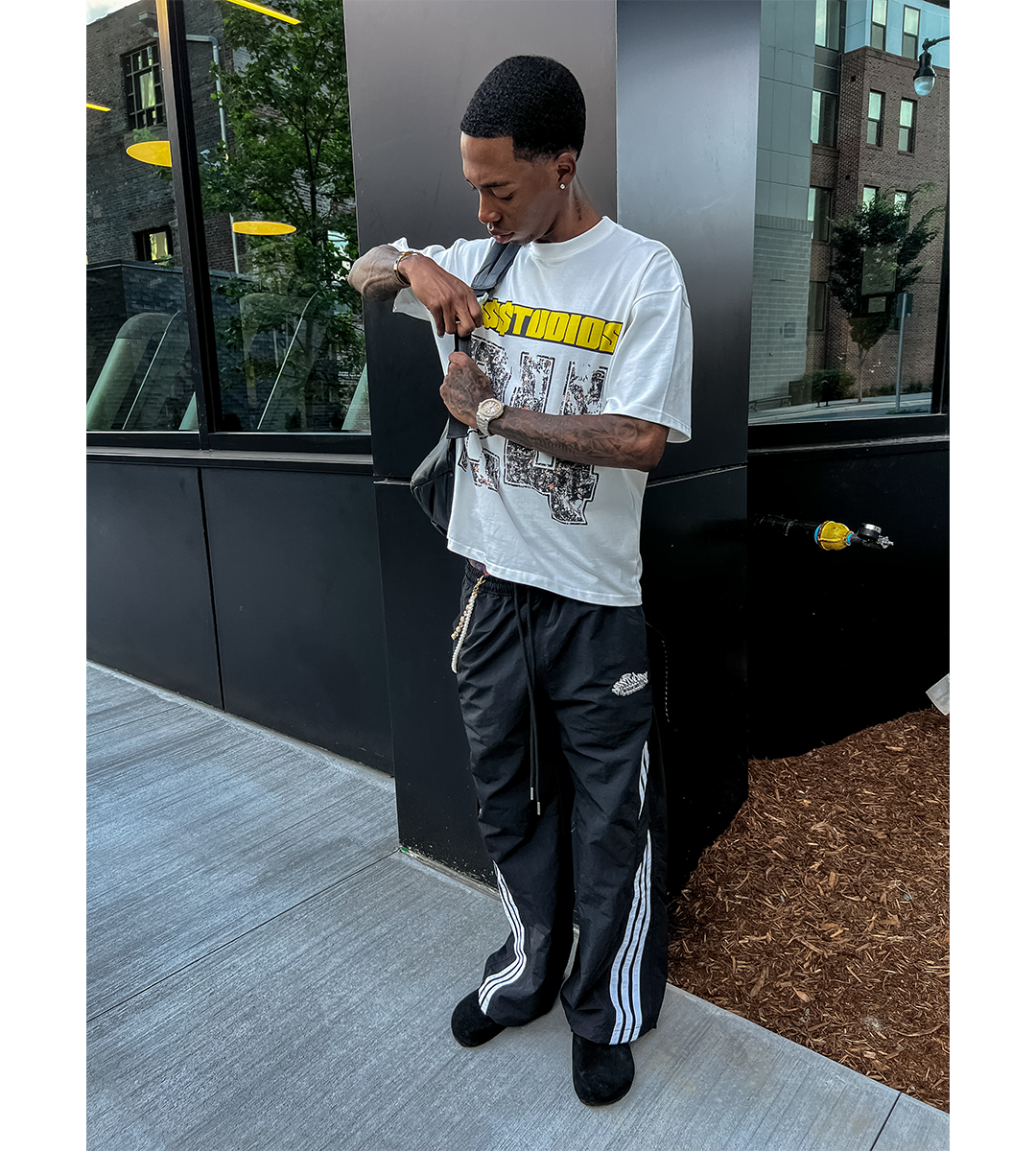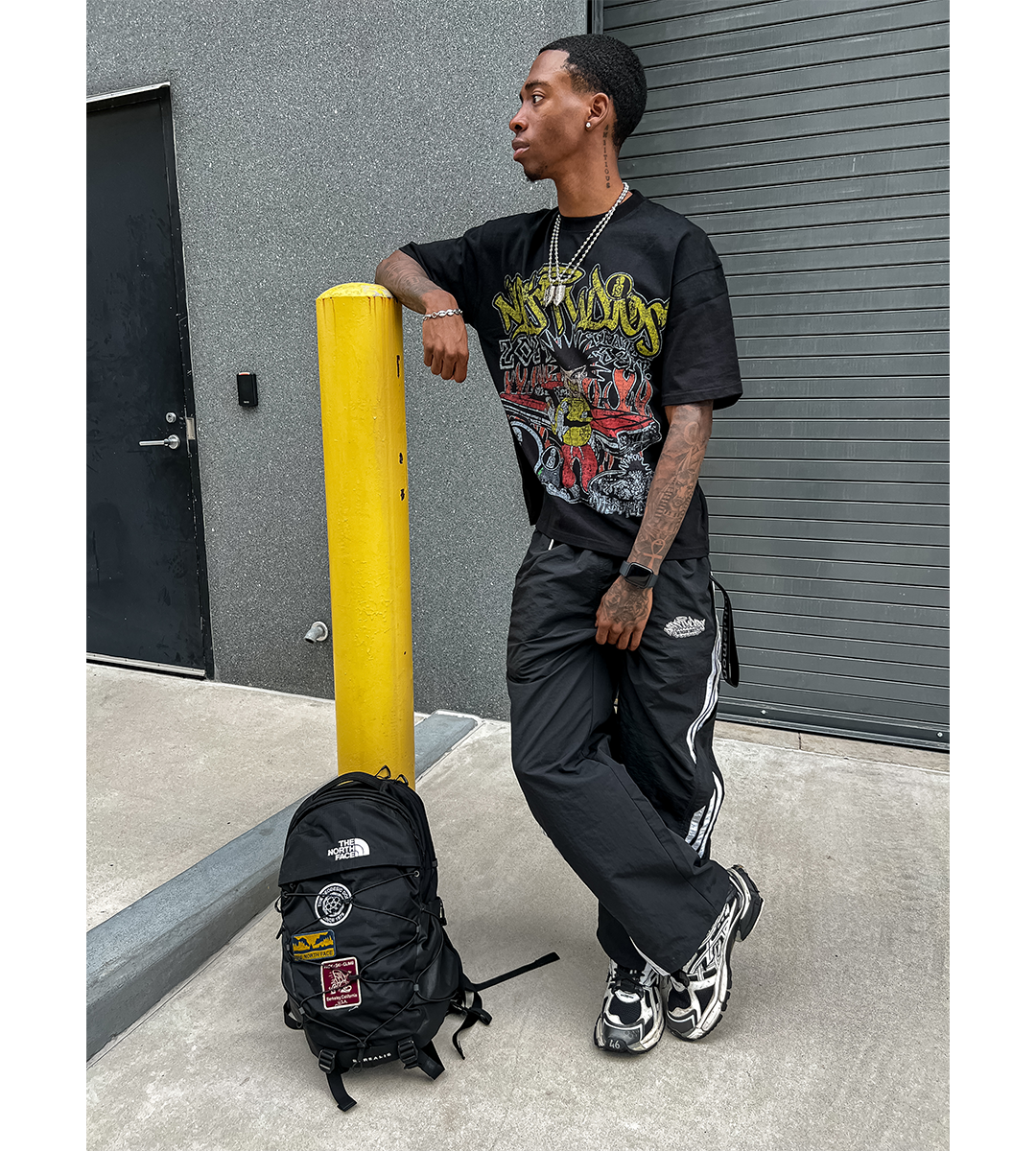 - Baggy fit (1st model is 188 cm / 6’2”, 165lbs and is wearing a size M)